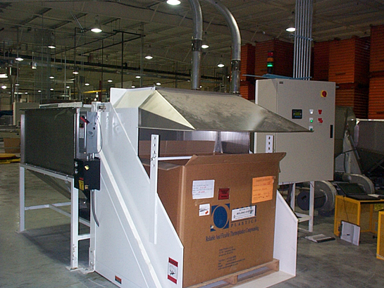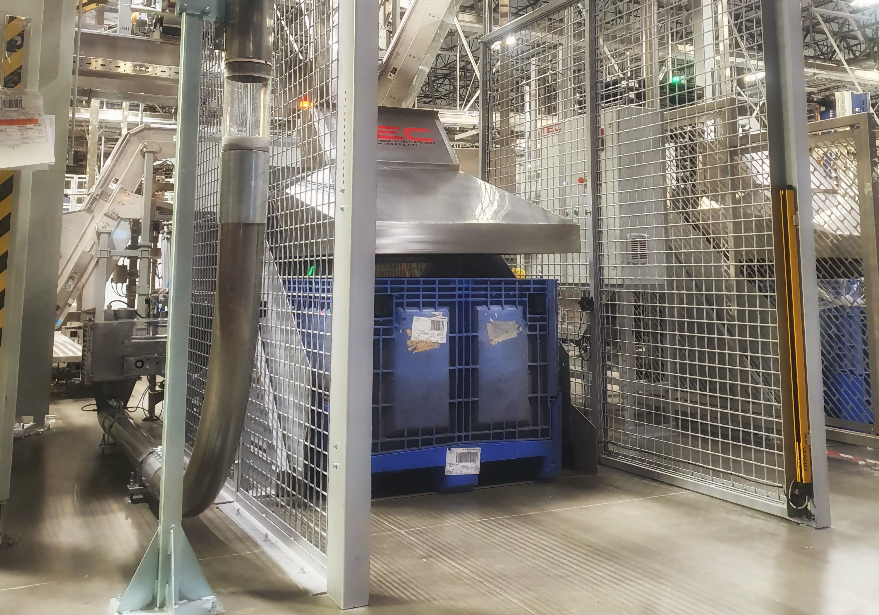 TEC Tote and Gaylord Dumpers empty Totes and Gaylords into a feeding hopper in a quick and simple manner. TEC Dumpers are designed to be operated manually, by an operator, or automatically, controlled by product level sensors in the storage hopper. As an accessory we offer a wire mesh guarding with a sensor that activates when closed in order to offer a safer operation.